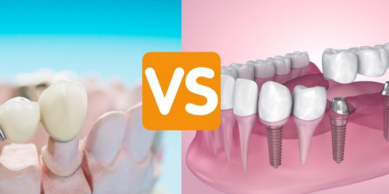 İmplant, eksik diş kökünün yerine çene kemiğine yerleştirilen titanyum vida üzerine sabit diş yapılması işlemidir. Köprü ise eksik diş boşluğunu kapatmak için komşu dişlerin küçültülerek üzerine sabit protez yapılması yöntemidir.
